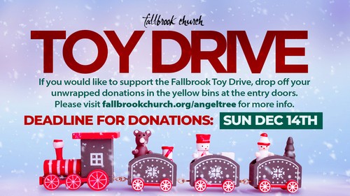 In partnership with the Prison Fellowship Ministry program, the Angel Tree Ministry seeks to reflect the mission of the Salvation Army’s model to provide Christmas gifts for hundreds of thousands of children around the country each year. If you want more information about this ministry, please send your inquiry to angeltree@fallbrookchurch.org.
