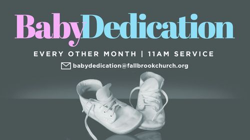 Baby Dedication is about commitment. It’s your commitment as a parent to lead your child into a growing relationship with Jesus Christ, so that as he/she gets older, you are able to guide him/her and to help him/her understand what that means. At Fallbrook Church, we would like to partner with you in the spiritual development of your child as we participate in the dedication of your child to the Lord.